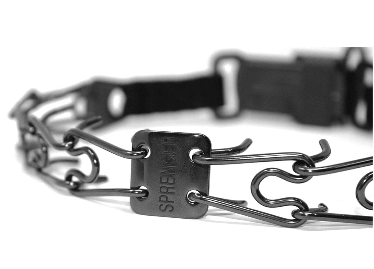 Herm Sprenger Collar de puntas de acero inoxidable negro con hebilla QR
