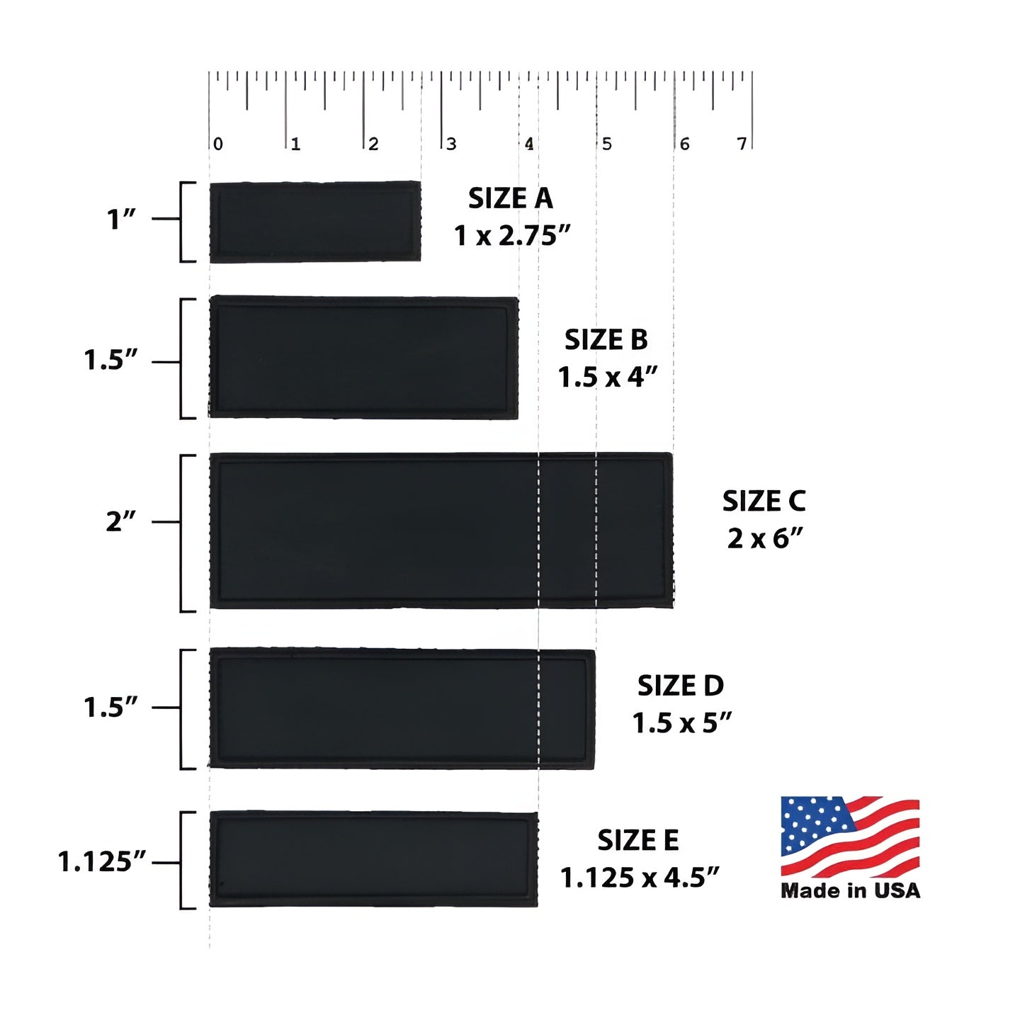 Size E: 1.125” × 4.25”