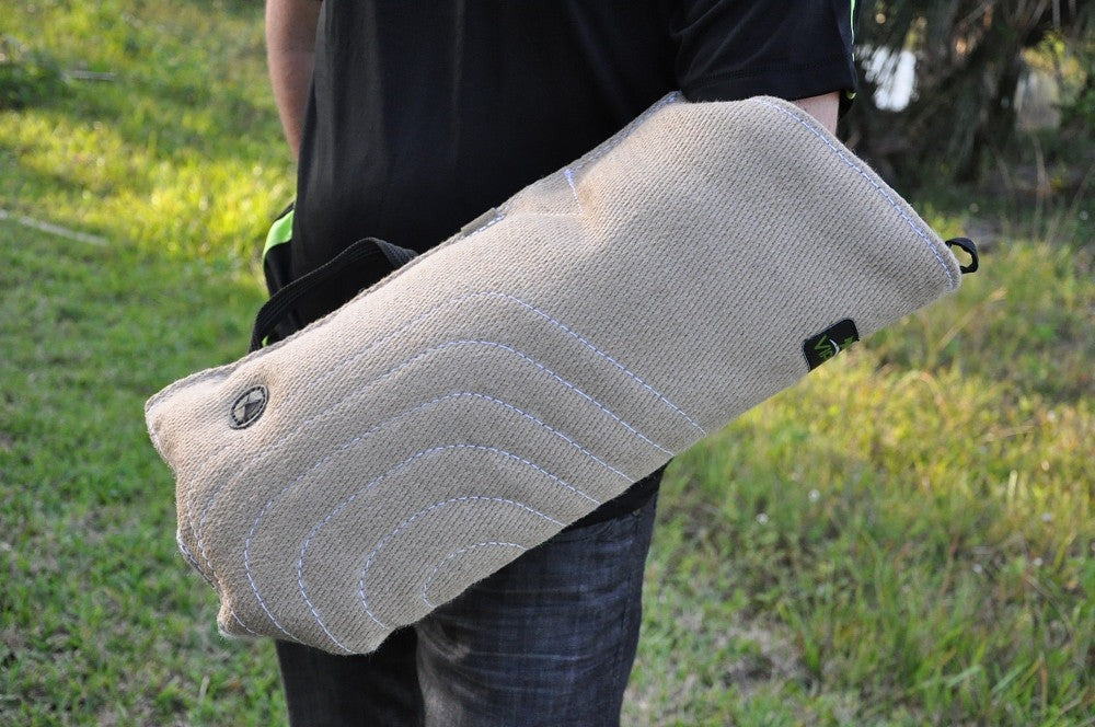 Sleeve covers the trainer's entire forearm. It includes an internal soft-grip handle and an external handle. Can be used on both right and left arm.