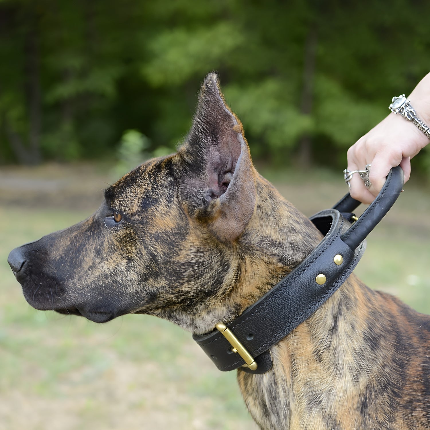 Extra Durable 2 Ply Leather Dog Collar with Handle - Ultimate Control