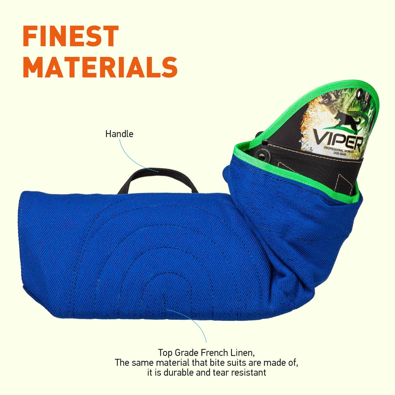 The dog supply fits most dog training sleeves available. Special interior padding allows to put it easy on the dog bite sleeve. Handle allows to use it also in off sleeve training and very helpful when working strong dogs.